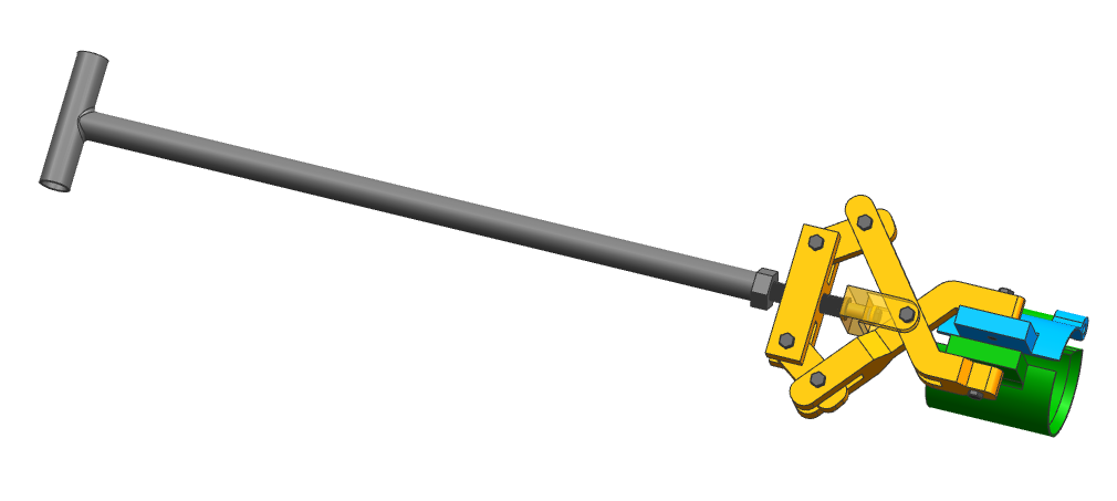 針對問題點,一款小巧實用的落輥工具的圖紙在謝俊君的努力下應(yīng)運(yùn)而出,工具在設(shè)計時充分考慮小巧輕便、夾持力強(qiáng)、快速夾緊松開、在拖拽過程中能將部分拉力轉(zhuǎn)化為夾持力等因素。經(jīng)努力攻關(guān),手持式抓輥器于2023年2月投入使用,使落輥處理提升了10分鐘以上,勞動強(qiáng)度降低,安全性提升。經(jīng)申請,該小工具獲國家實用新型專利。