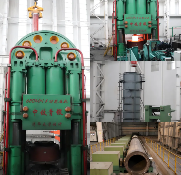2024 年 11 月 12 日上午,在中鈦青鍛 680MN 多功能壓機平臺上一根紅彤彤的超大尺寸316LN不銹鋼無縫管材徐徐吊出,然后快速進入冷卻水塔中,現(xiàn)場瞬間翻滾出大量的水汽。標志著本次超大口徑316LN不銹鋼無縫管材試制成功,據(jù)悉,該管材直徑約1000mm,壁厚僅為90mm左右,長度達到6m以上,在我國不銹鋼擠壓管材方面達到領(lǐng)先水平。得益于中鈦青鍛良好的設(shè)備精度和深厚的技術(shù)儲備,使得中鈦青鍛在不銹鋼管材擠壓方面具有明顯的質(zhì)量和成本優(yōu)勢。